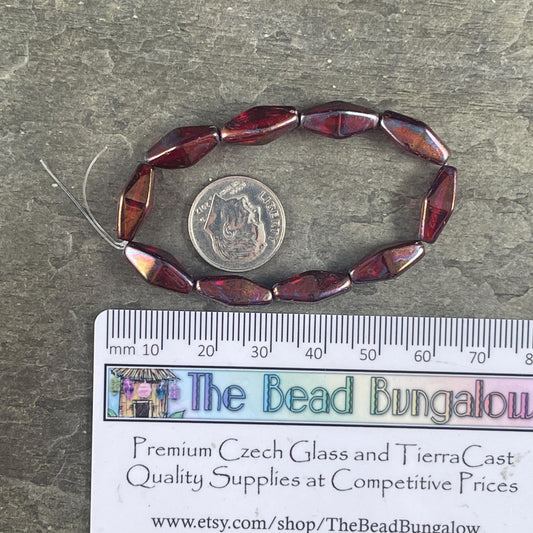 Czech Glass Beads - 14x7mm Rhombus Beads, Transparent Ruby Red with Metallic Rust and Purple Finish (RHO/N-2078) * Qty. 10 Beads