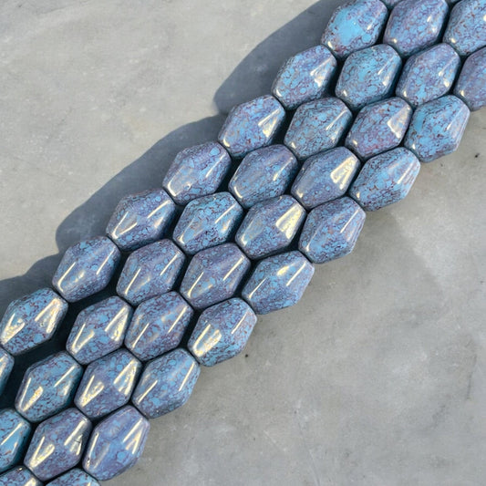 Czech Glass Bead - 14x7mm Rhombus Beads, Light Blue with Marbled Blue Picasso (RHO/N-0712) * Qty. 10 Beads
