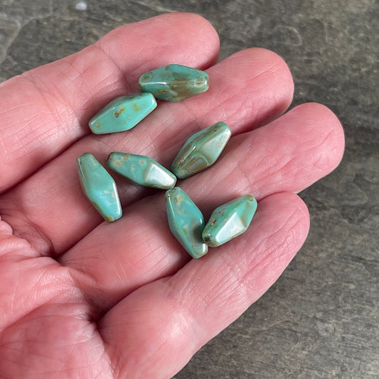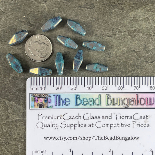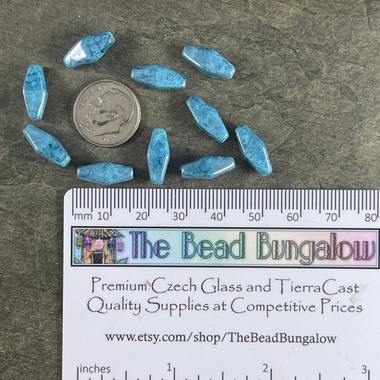 Czech Glass Beads - 14x7mm Rhombus Beads, Turquoise Picasso (RHO/N-0697) * Qty. 10 Beads