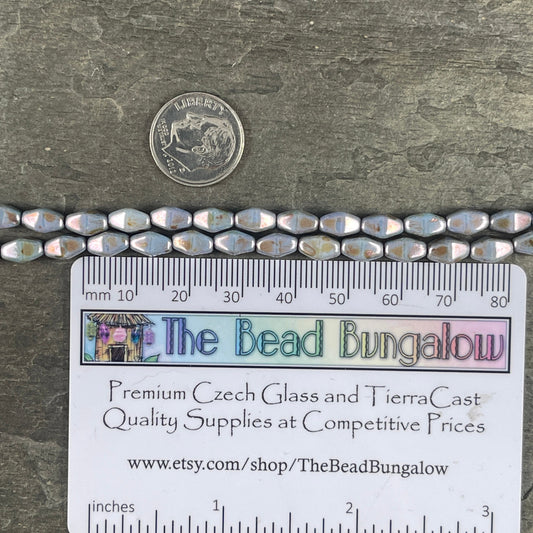 Alabaster Blue Luster Czech Glass Beads, 8x6mm Slate Gray, Blue, Green Elongated Bicone (EB4) * Qty. 16