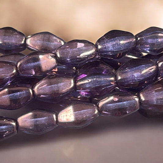 Semi-Transparent Purple Luster Czech Glass Beads, 8x6mm Blue Iris Elongated Bicone (EB3) * Qty. 16