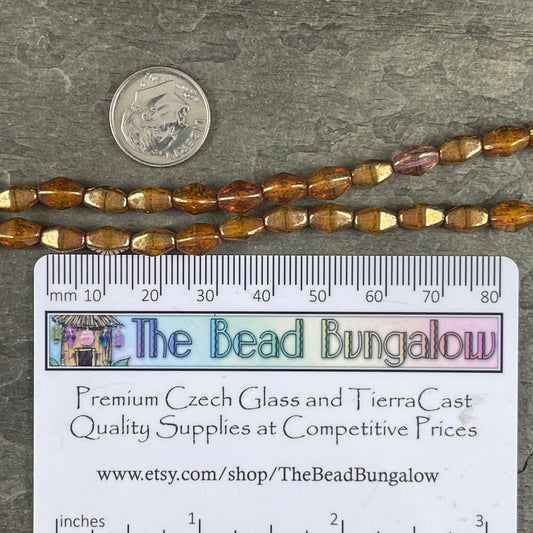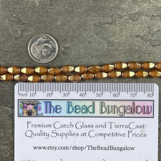 Semi-Transparent Caramel with Bronze Luster, Czech Glass Beads, 8x6mm Elongated Bicone (EB8) * Qty. 16