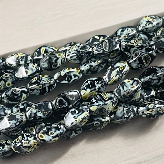 Black Picasso Beads, Elongated Bicone - 8x6mm Czech Glass Beads, Black with Full Picasso Finish (EB2) * Qty. 16