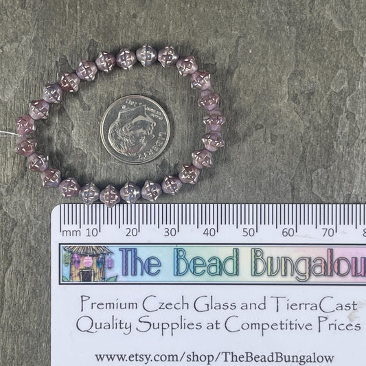 Lilac Purple Silk Czech Glass Beads, 6mm Saturn Bicone (PS6/RJ-5244) * 25 Beads