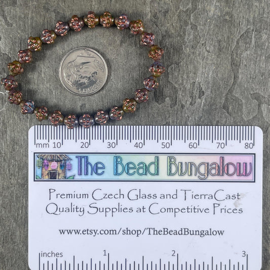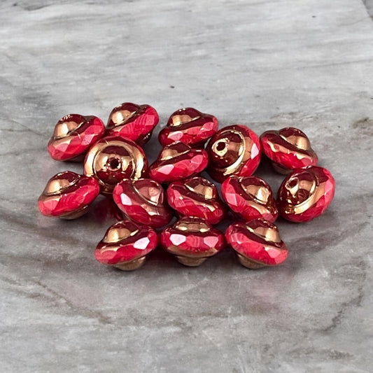 Opaque Red 8x6mm Bicone, Czech Glass Beads, Ruby Red Silk with Bronze Picasso (SAT/N-2072) * Qty. 15