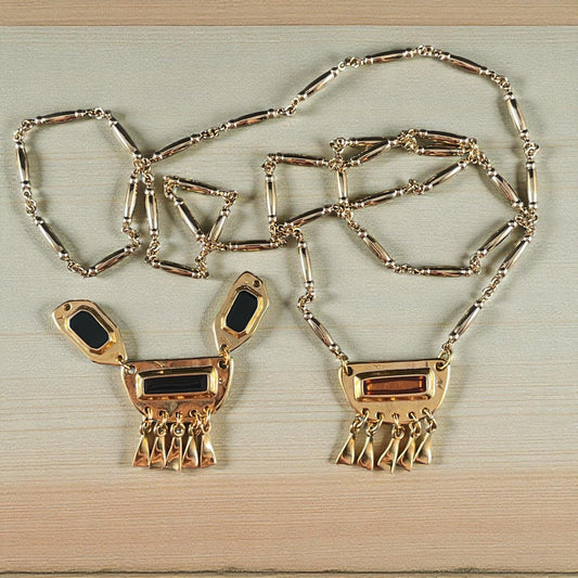 Gold and Black Chandelier Drop, 24k Gold Plated Connector/Pendant/Charm with Black Enamel Inlay (PF/15294-13-0565) * Qty. 2