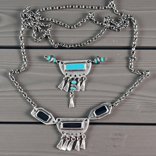 Turquoise Blue and Silver Chandelier Pendant, Antiqued Silver Plated Connector with Sky Blue Enamel Inlay (PF/15295-72-0299) * Qty. 2