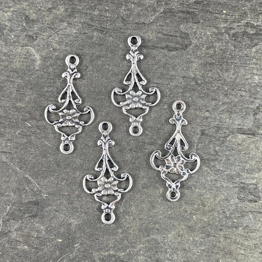 Floral Filigree Connector, Filigree Link with Floral Design, Oxidized Silver Plated Brass (VJS/M07s) * Qty. 4