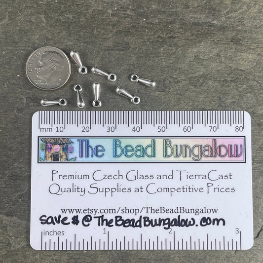Silver Teardrop Charm, 10mm Elongated Teardrop, Small Tear Drop Charm (11264-77) * Qty. 12