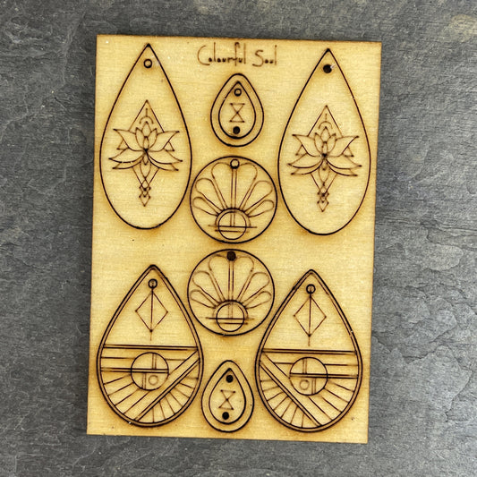Colourful Soul Sacred Beauty Jewelry Pop Outs Paintable Wood Jewelry Components - Unique Macrame or Seed Bead DIY Boho Jewelry - One Panel