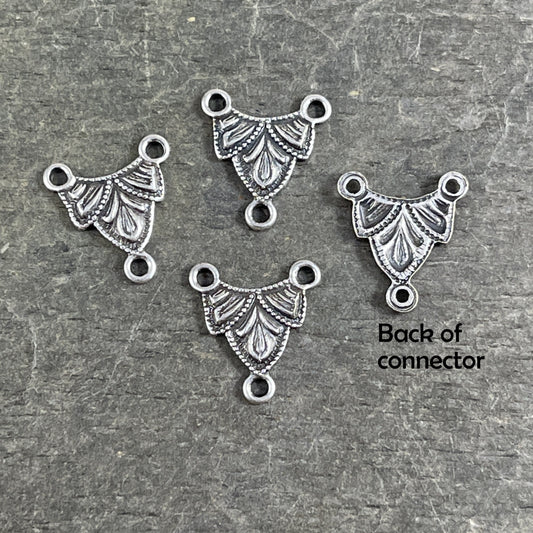 Antiqued Silver Ornate Links, 2-to-1 Connector, Link for Earrings or Multi-Strand Jewelry, Small Jewelry Link (A366) * Qty. 4