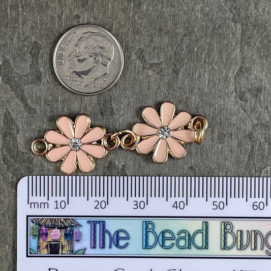 Enamel Floral Connector Pink Flower Links ~ Pale Peachy Pink and Gold 15x22mm Pink Daisy Connector (1512-9547) * Set of 2