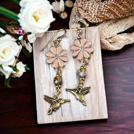 Enamel Peachy Pink Flower with Bumble Bee or Hummingbird Charm ~ Earring Kit ~ Includes all the components to make these earrings * 1 Kit