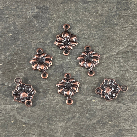 Small Flower Theme Link ~ Antiqued Copper Detailed Flower Link for Jewelry ~ 11x8mm Copper Link (VJS/S248) * Qty. 4