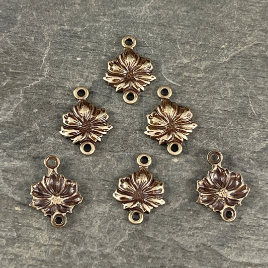 Small Flower Theme Link ~ Oxidized Brass Detailed Flower Link for Jewelry ~ 11x8mm Brass Link (VJS/C85) * Qty. 4