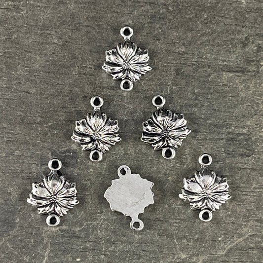 Small Flower Theme Link ~ Oxidized Silver Link for Jewelry ~ Detailed 11x8mm Silver Flower Link (VJS/G22) * Qty. 4