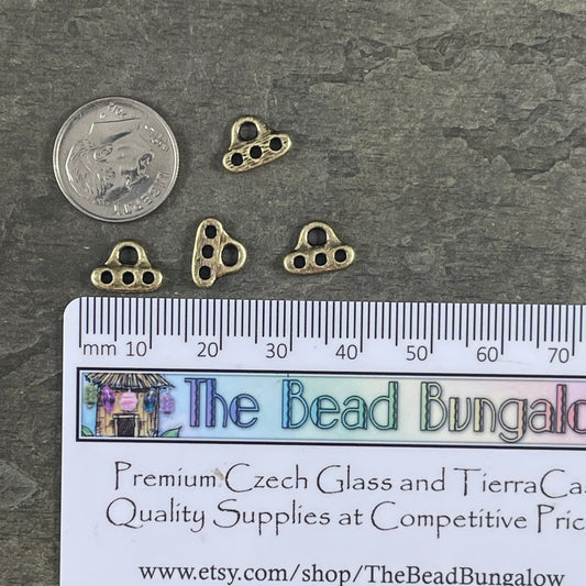 TierraCast Silver Multi Strand Connector, Antiqued Brass 3-strand End Bar (PF/691-57) * Qty. 4