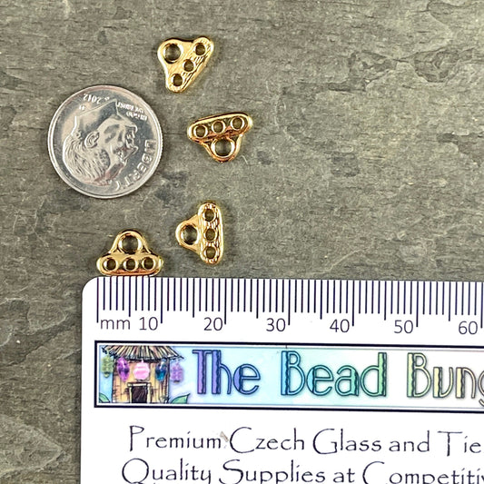 TierraCast Multi Strand Connector, 24k Gold Plated Pewter 3-hole End Bar (PF/691-12) * Qty. 4