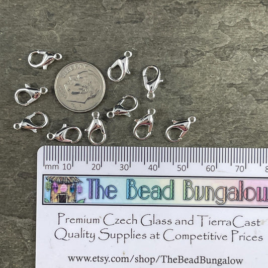 12x7mm Lobster Clasp, Silver Plated Zamak, Nickel Free (PF/605-12-10) * Qty. 12