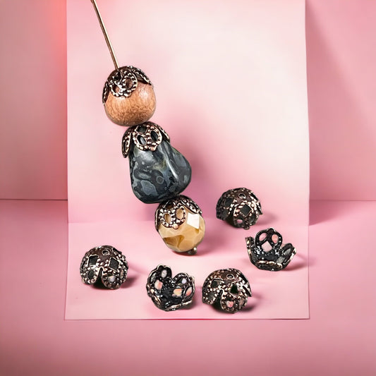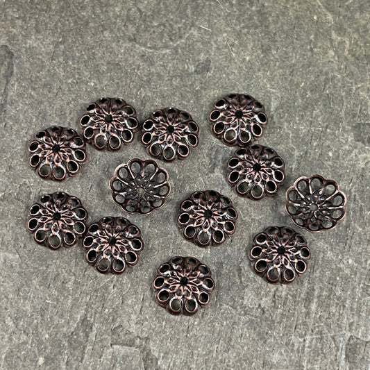 8mm Antiqued Copper Victorian Style Filigree Bead Caps, Bendable Antiqued Copper Plated Brass (VJS/C105C) * Qty. 10