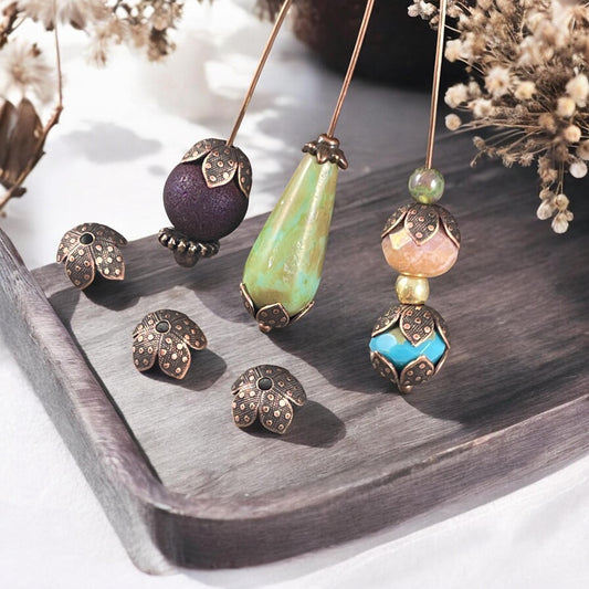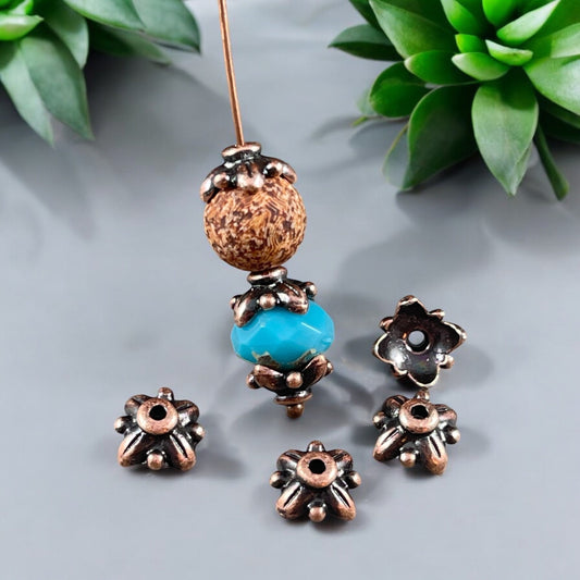 Copper Petal Bead Caps, 8mm Antiqued Copper Bead Caps with Dots (BRCO/007) *