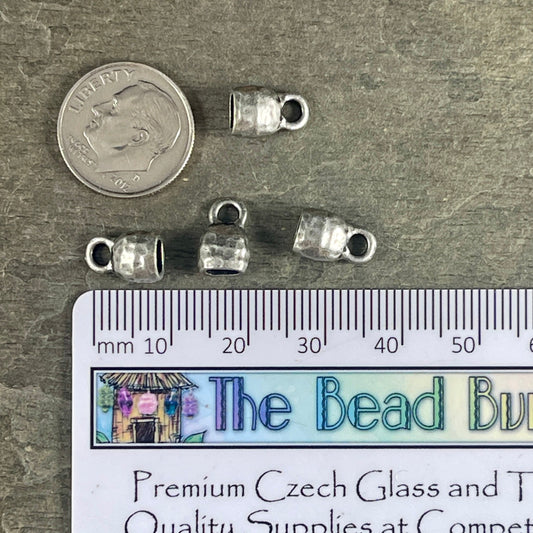 TierraCast Silver Crimpable End Caps, Hammered Texture End Caps for Leather Cord, White Bronze Plated (PF/923-28)* Qty. 4