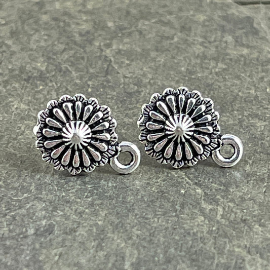 TierraCast Post Earring Setting, Antiqued Silver Concho Post Earring (PF/427-77) * Qty. 4
