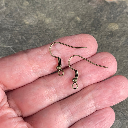 Antiqued Brass Hook Style Ear Wires, Earring Hooks, Nickel Free Iron, Jewelry Making Necessities (E135-NFAB) - Qty. 100