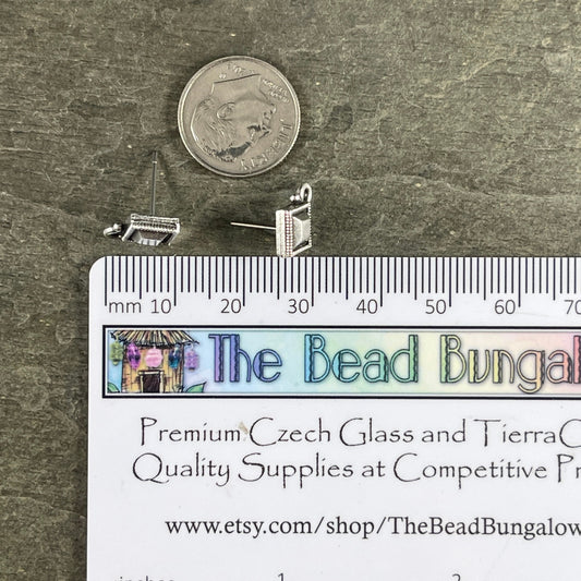 TierraCast Post Earring Setting, Antiqued Silver Post Earring with Faceted Diamond (PF/420-77) * Qty. 4