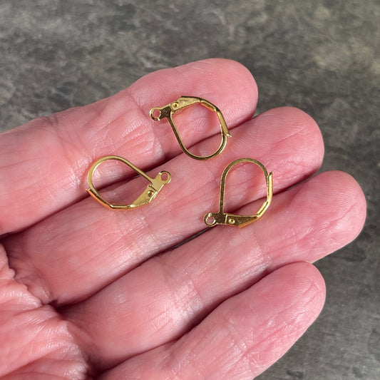 Gold Lever Back Ear Wires, 15x10mm Gold Plated Brass, Nickel Free Leverback Earwires (R014) * Qty. 30