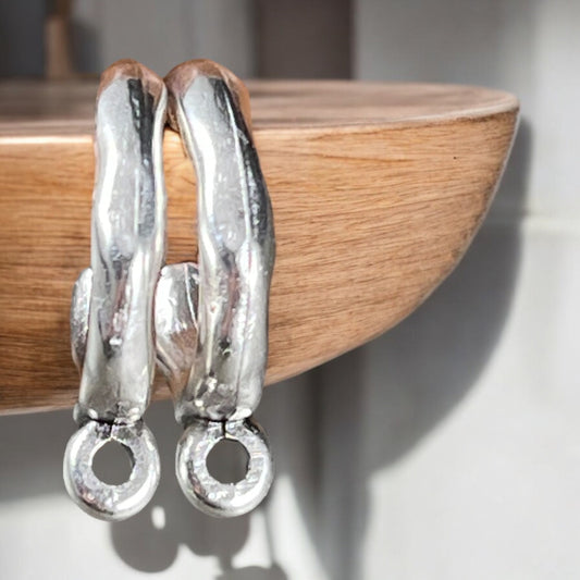 Antiqued Silver Hoop with Loop Post Earring, Organic 16mm Hoop with 2mm Loop (PF/01394-77) * Qty. 2