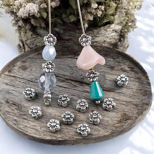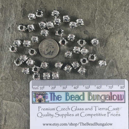 Antiqued Silver Flower Bead, Double Sided 5.25mm Metal Flower, Nature Theme Beads (O007-01) * Qty. 40