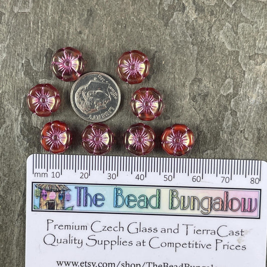 Czech Glass Beads - Tiny Blooms - 8.5mm Watermelon Red Flower Bead, Light Red with Gold Wash (PTB1) * Qty. 16
