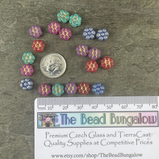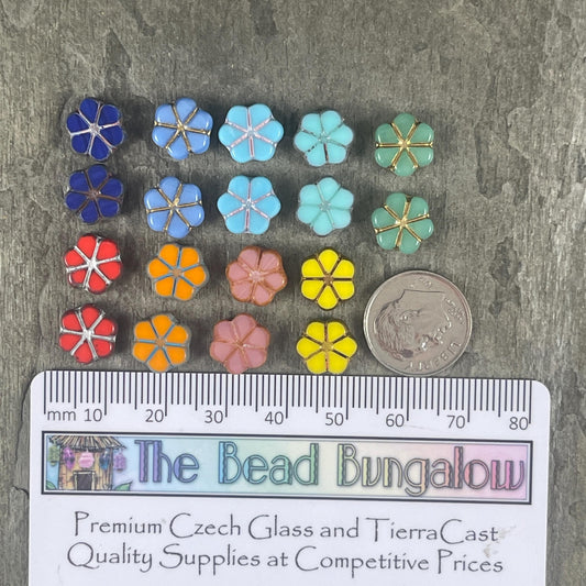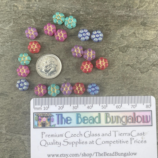 Czech Glass Beads - Tiny Blooms - 8.5mm Flower Coin Beads, Tiny Blooms Assortment of Colors * Qty. 20