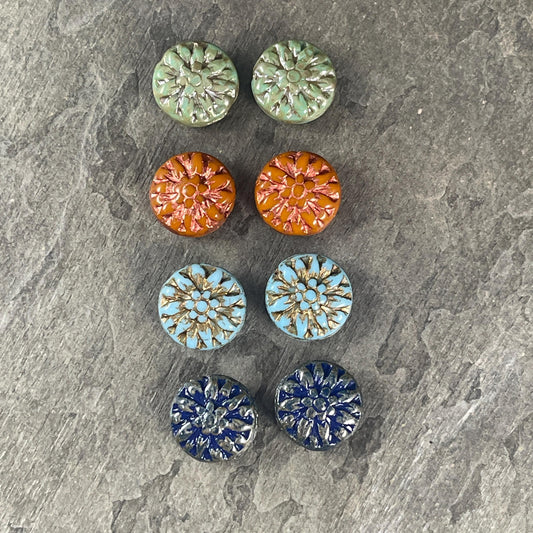 Czech Glass Bead Assortment - 14mm Dahlia Flower Beads - Pairs for Earrings, Flower Assortment (DM-2) * Qty. 8