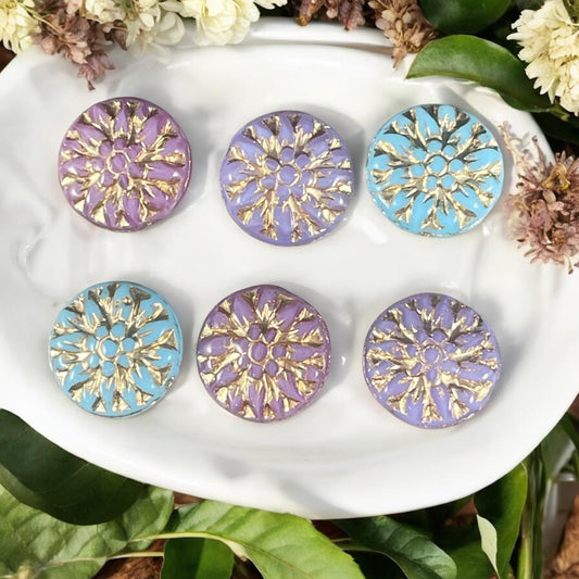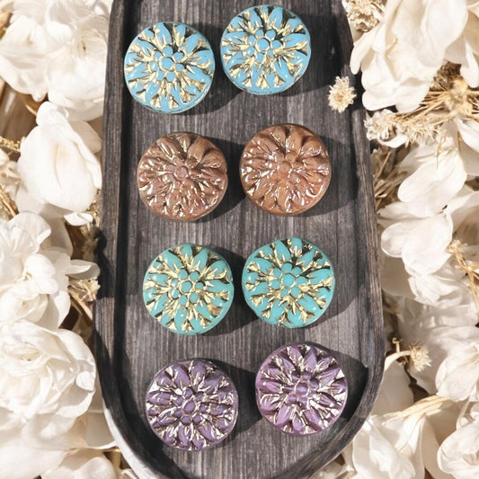 Czech Glass Bead Assortment - 14mm Dahlia Flower Beads - Pairs for Earrings, Flower Assortment (DM-5) * Qty. 6