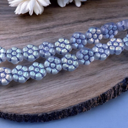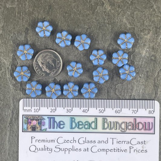 Czech Glass Beads, 10mm Periwinkle Blue Flower, Blue Opaline Glass with Gold Wash (PFMN-2) * Qty. 10