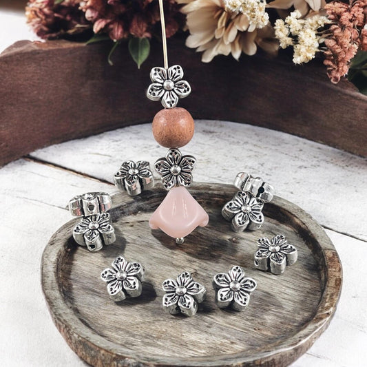 Antiqued Silver Flower Bead, Double Sided 8.5mm Metal Flower, Nature Theme Beads (N005-071) * Qty. 30