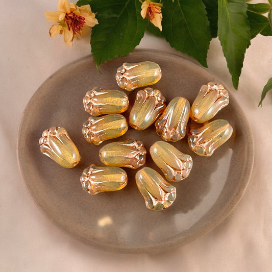 Caramel Opal Flower with Copper Wash, Czech Glass Beads, 12x8mm Lily Bud Flower (LBud42) * Qty. 12