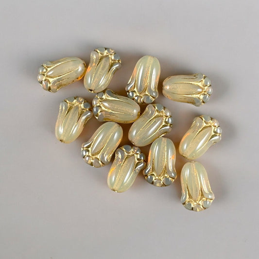 Beige Opal Flower with Gold Wash, Czech Glass Beads, 12x8mm Lily Bud Flower (LBud44) * Qty. 12