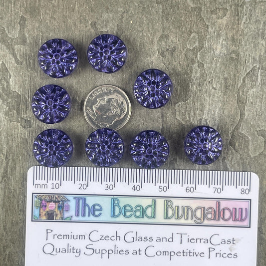 14mm Czech Glass Dahlia Flower Beads - Transparent Tanzanite Flower with Purple Wash (FL14/RJ-5169) * Qty. 8