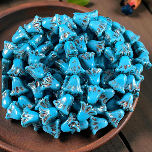 Czech Beads, 10mm Lily Flower, Sky Blue with Bronze Wash (Lily/RJ-5488) * Qty. 15