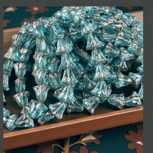 Czech Beads, 10mm Lily Flower, Transparent Aqua with Platinum Wash (Lily/RJ-5502) * Qty. 15