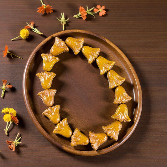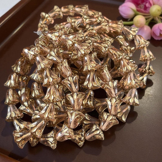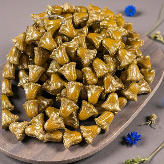 Czech Beads, 10mm Lily Flower, Dijon Mustard with Gold Wash (Lily/RJ-5495) * Qty. 15