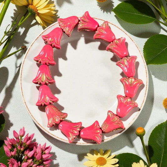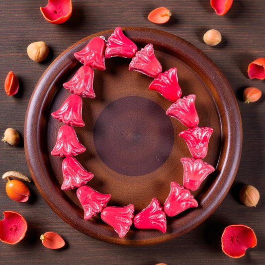 Czech Beads, 10mm Lily Flower, Coral Red with Pink Wash (Lily/RJ-5500) * Qty. 15
