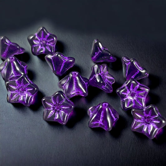 Czech Glass Beads - 6x9mm Bell Flower, Dark Purple with Lavender Wash (BF/N-0841) * Qty. 25