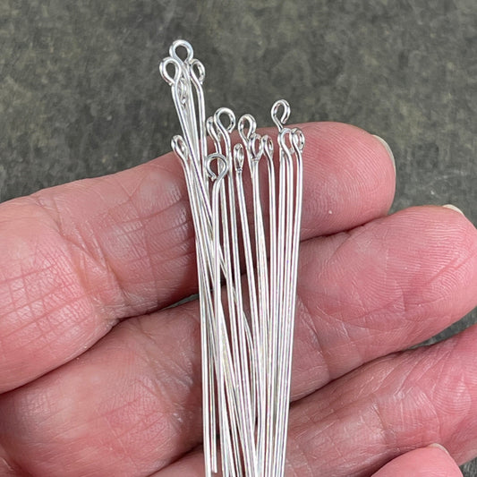 2" Silver Eye Pins, 21 Gauge Pins for Jewelry Making, Silver Plated Brass (5451) * Qty. 100