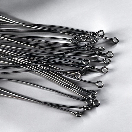 2" Black Eye Pins, 21 Gauge Pins for Jewelry Making, Gunmetal Black Plated Brass Eye Pins (5454) * Qty. 100