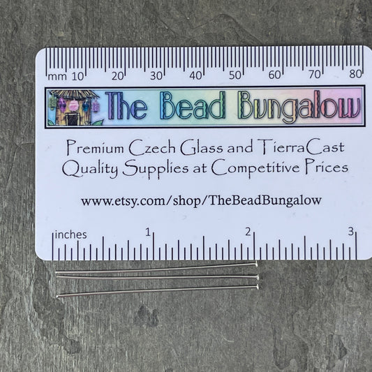 2" Silver Head Pins, 21 Gauge Flat Head Silver Plated Brass Head Pins (5408) * Qty. 100