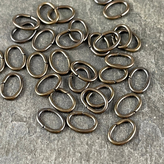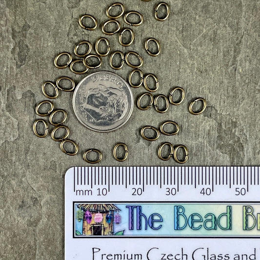 6x4mm Brass Jump Rings, 18g Antiqued Brass Open Jump Rings ~ Oval Shape (5054) * Qty. 100